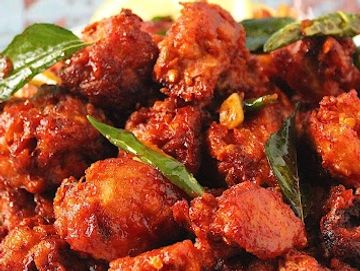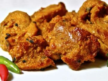 Boneless chicken cooked with onions and spices, dry velvety gravy