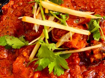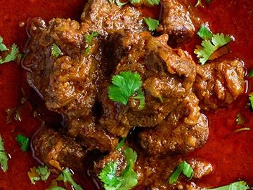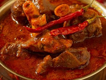 Fiery Rajasthani goat curry with pounded spices and whole red chillies