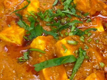 Paneer, cooked with fresh tomatoes, enriched with cream and butter