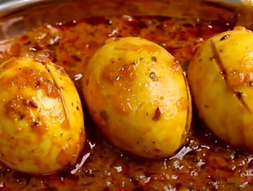 Boiled egg curry with tomatoes, onions and spices, a Dhaba favorite
