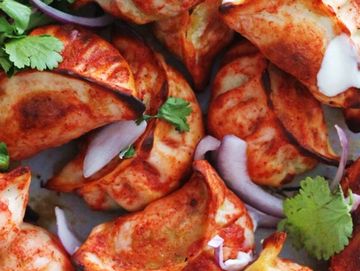 Minced chicken and dumplings (8 pieces) pan fried with tandoori spices