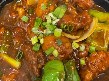 Paneer or Tofu, scallions, red & green peppers, chilli paste