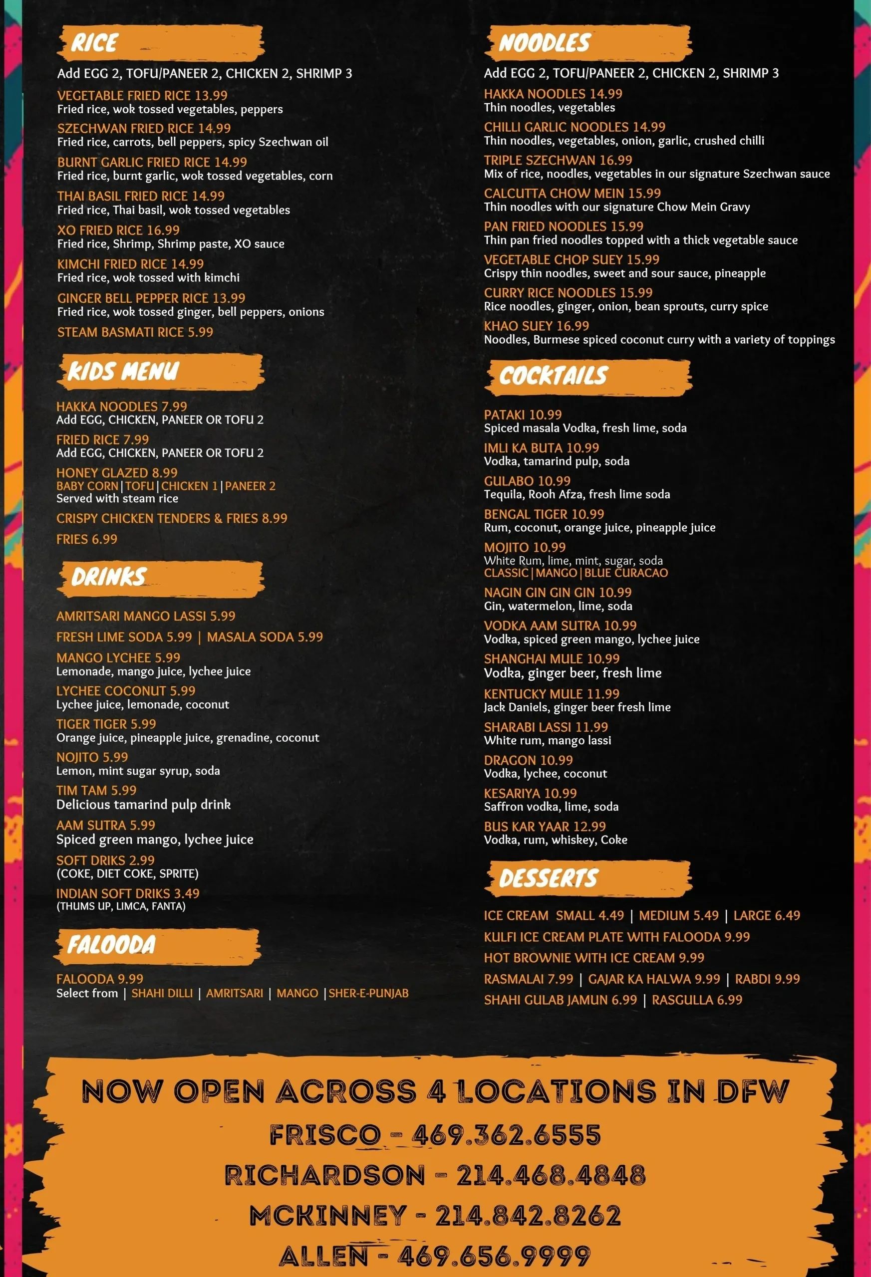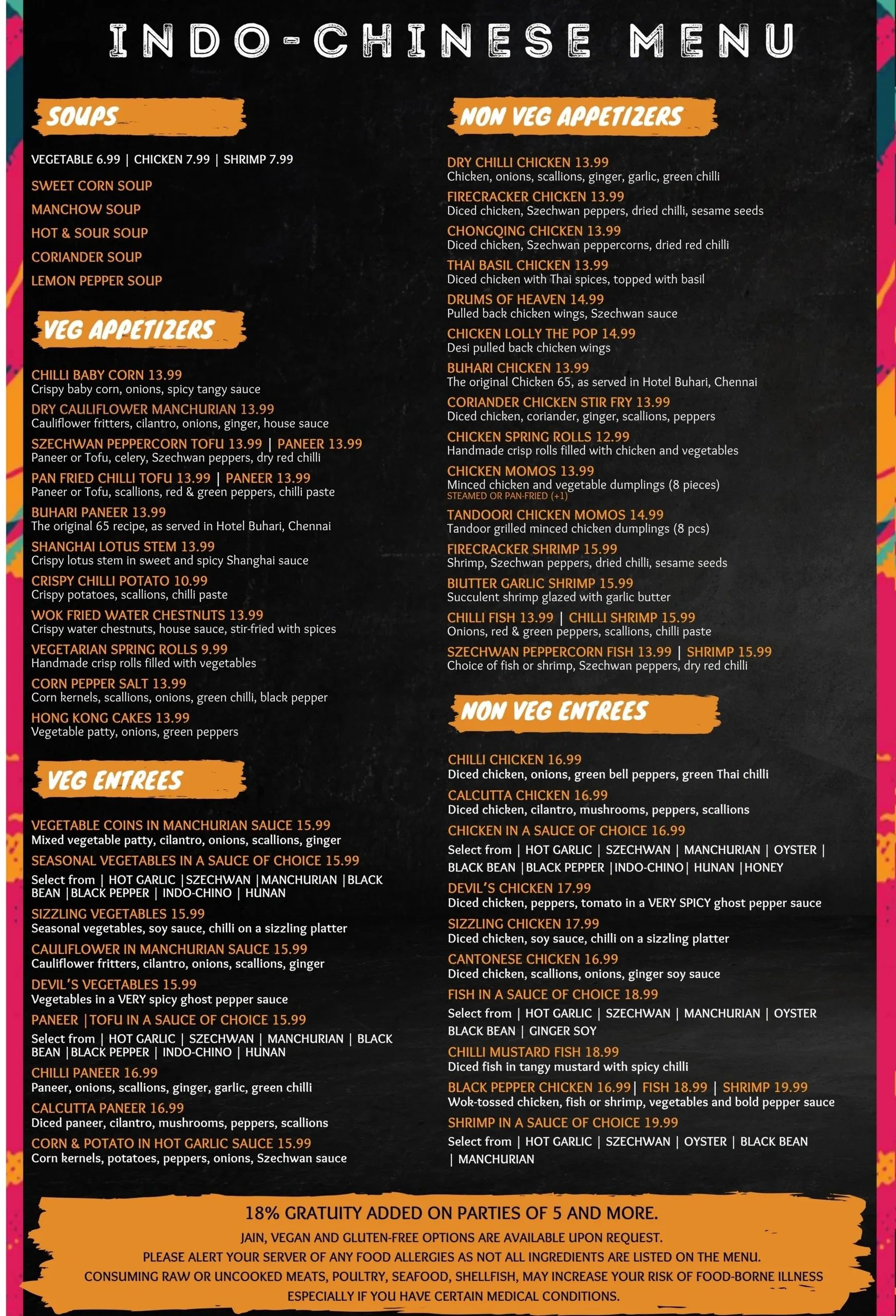 VEG 5.99 / CHICKEN 6.99 / SHRIMP 7.99